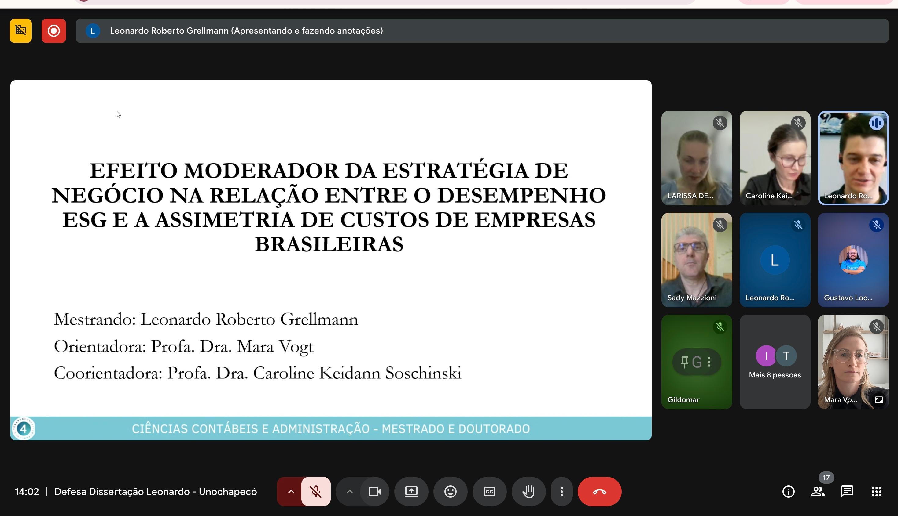 Título da dissertação: Efeito moderador da estratégia de negócio na relação entre o desempenho ESG e a assimetria de custos de empresas brasileiras