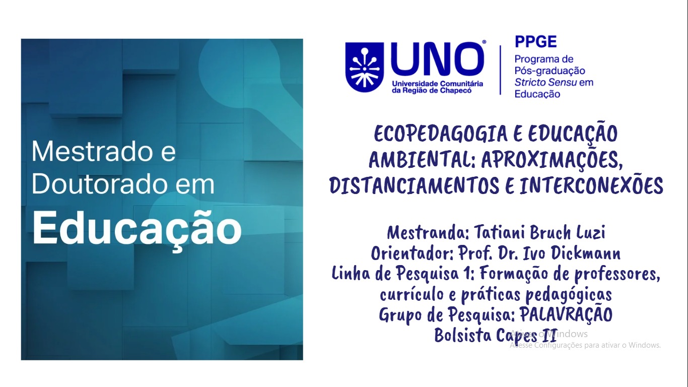Título da dissertação: Ecopedagogia e educação ambiental: aproximações, distanciamentos e interconexões