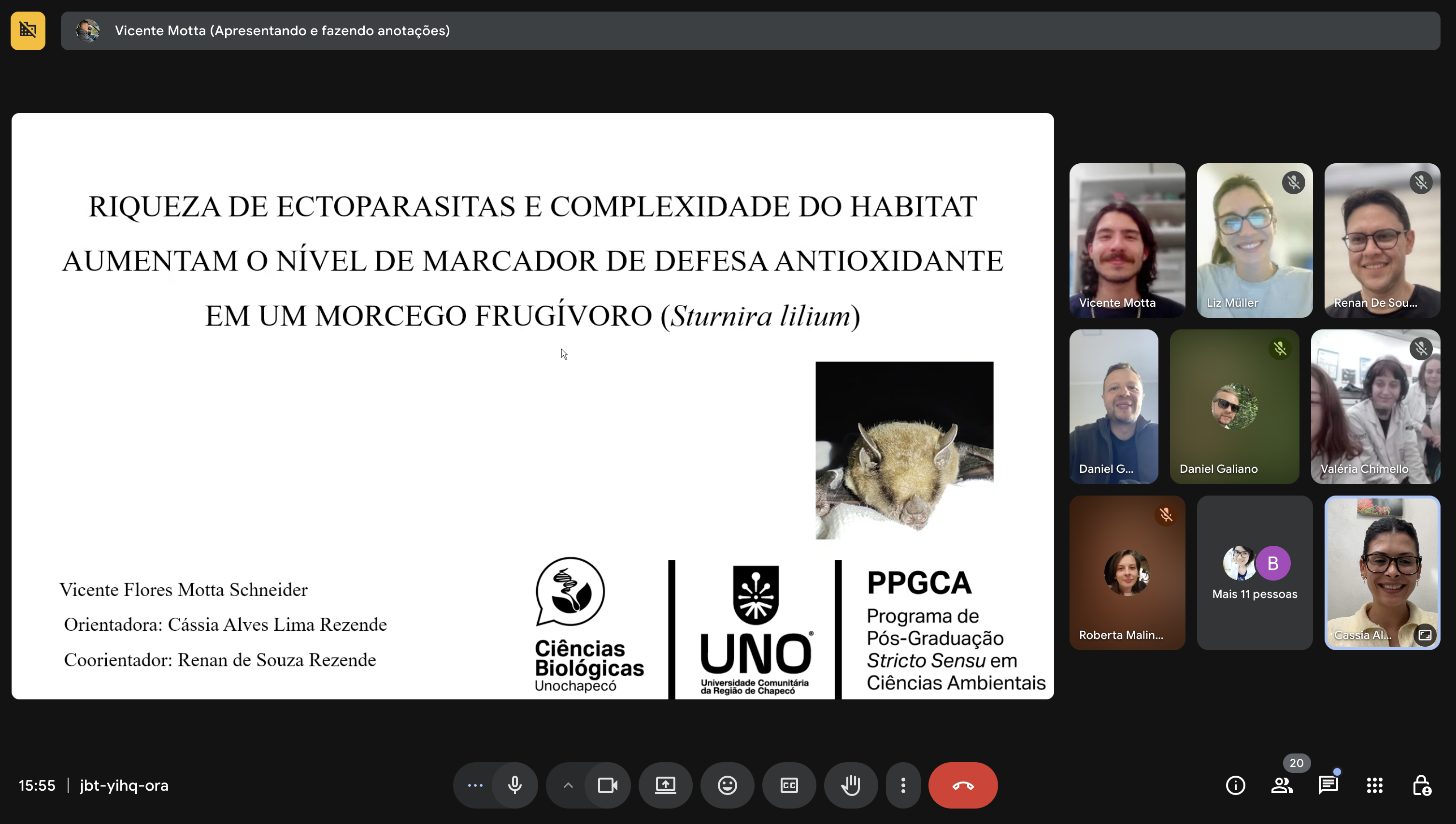 Título da dissertação: Riqueza de ectoparasitas e complexidade do habitat aumentam o nível de marcador de defesa antioxidante em um morcego frugívoro (Sturnira lilium)