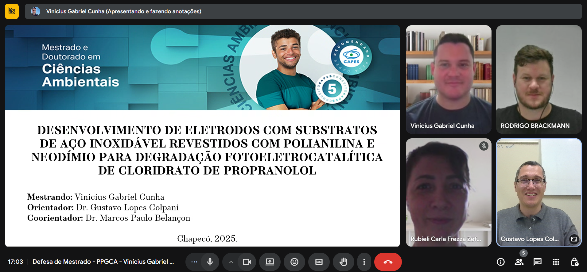 Título da dissertação: Desenvolvimento de eletrodos com substrato de aço inoxidável revestidos com polianilina e neodímio para degradação fotoeletrocatalítica de cloridrato de propranolo