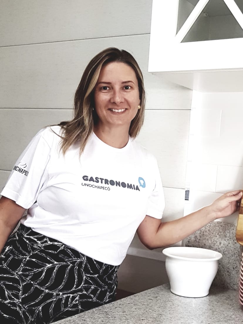 Professora há 10 anos no curso da Unochapecó, e coordenadora desde 2016, Simone explica que na Gastronomia, ocorre uma aproximação muito grande com todos os alunos e professores.