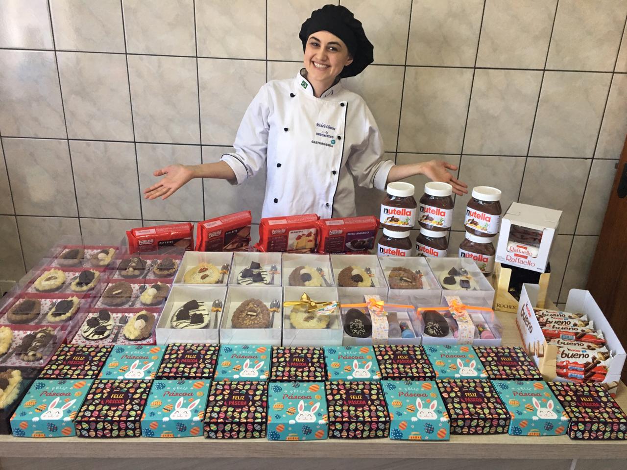 Michele Zonatto de Oliveira está no último período do curso, e apesar de sempre ter gostado de cozinhar, nunca tinha pensado em seguir a profissão. “Decidi cursar gastronomia por conta da minha paixão por doces e para aprimorar meu conhecimento na cozinha como um todo”, destaca a estudante.