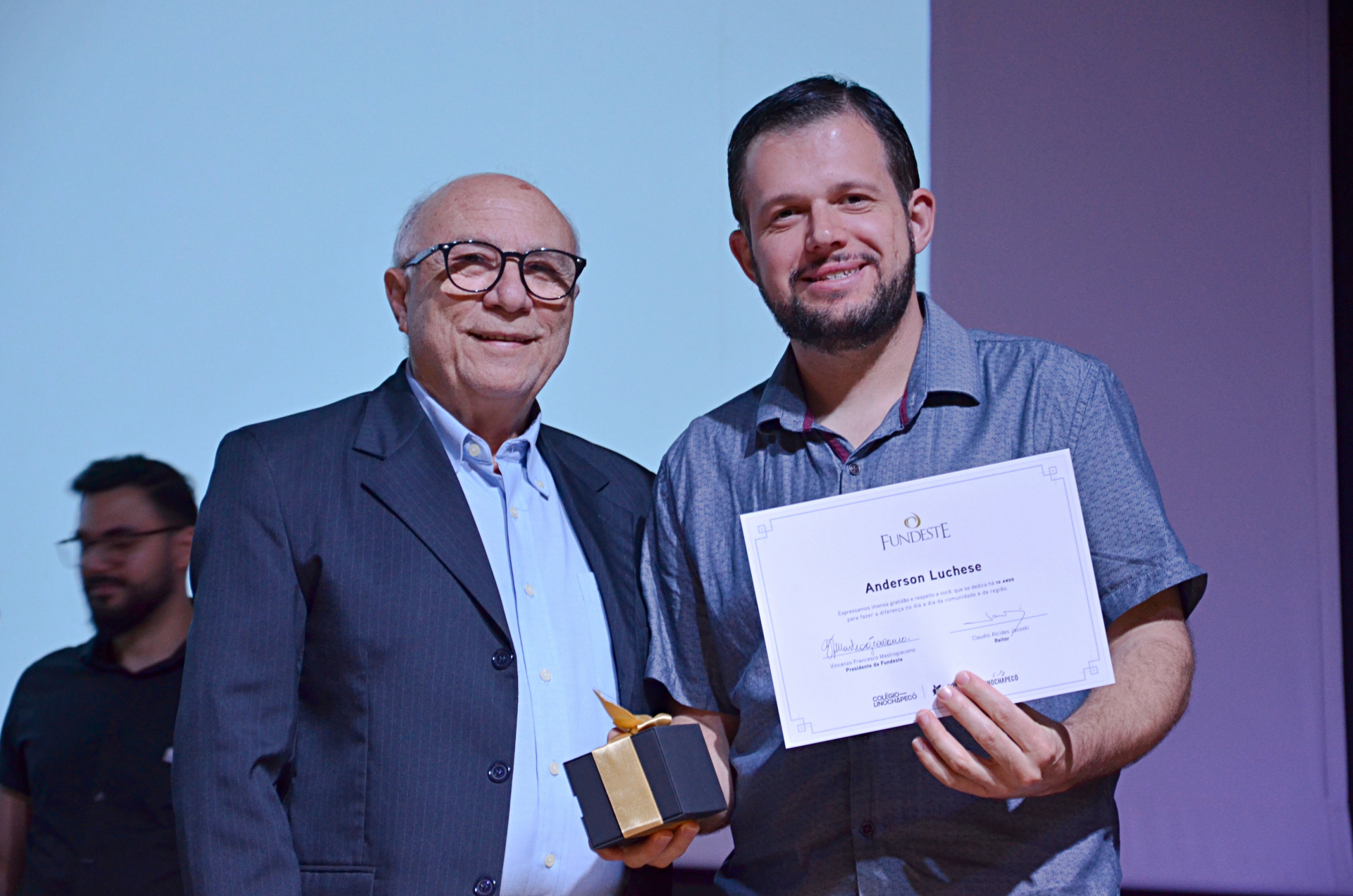 Além de ser reconhecido como o Melhor professor de Libras de Chapecó, Anderson Luchese foi homenageado pela Unochapecó pelos 10 anos de atuação na instituição. A homenagem foi realizada no último dia 27, ocasião em que a Fundeste/Unochapecó celebrou o Dia do Técnico e Professor.
