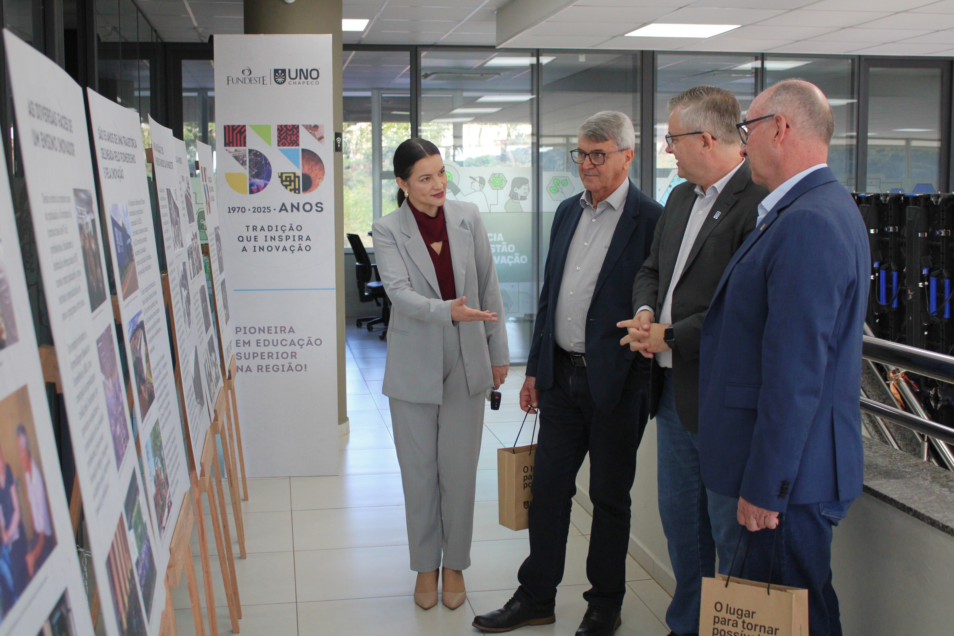 Em consonância com esta ideia, o reitor Claudio afirma que, em todo seu processo de construção e formação, a Fundeste/Unochapecó esteve à frente de seu tempo. Uma vez que foi pioneira na região, trazendo antes que todos um curso de graduação, mestrado, doutorado, e Parque Tecnológico.