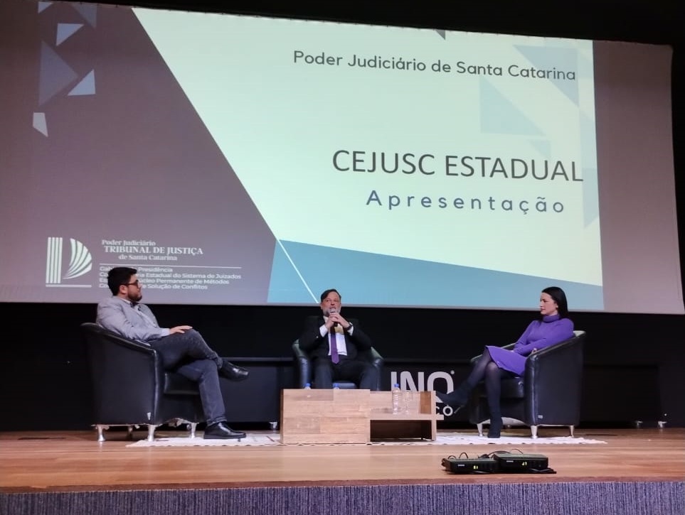O tema abordado pelo magistrado foi “Mediação Judicial: espaço democrático para solução dos conflitos”. Assim, foi possível discorrer sobre esse modo de solução de demandas, inclusive as pré-processuais que derivarem de atendimentos ao cidadão, que são realizados pelo Cejusc Estadual. A equipe, atualmente, conta com mais de uma centena de mediadores, já certificados e em formação, e segue em estruturação evolutiva conforme organização da Coordenadoria Estadual do Sistema dos Juizados Especiais e do Núcleo Permanente de Métodos Consensuais de Solução de Conflitos (Cojepemec), do PJSC, sob coordenação do desembargador Sílvio Dagoberto Orsatto.