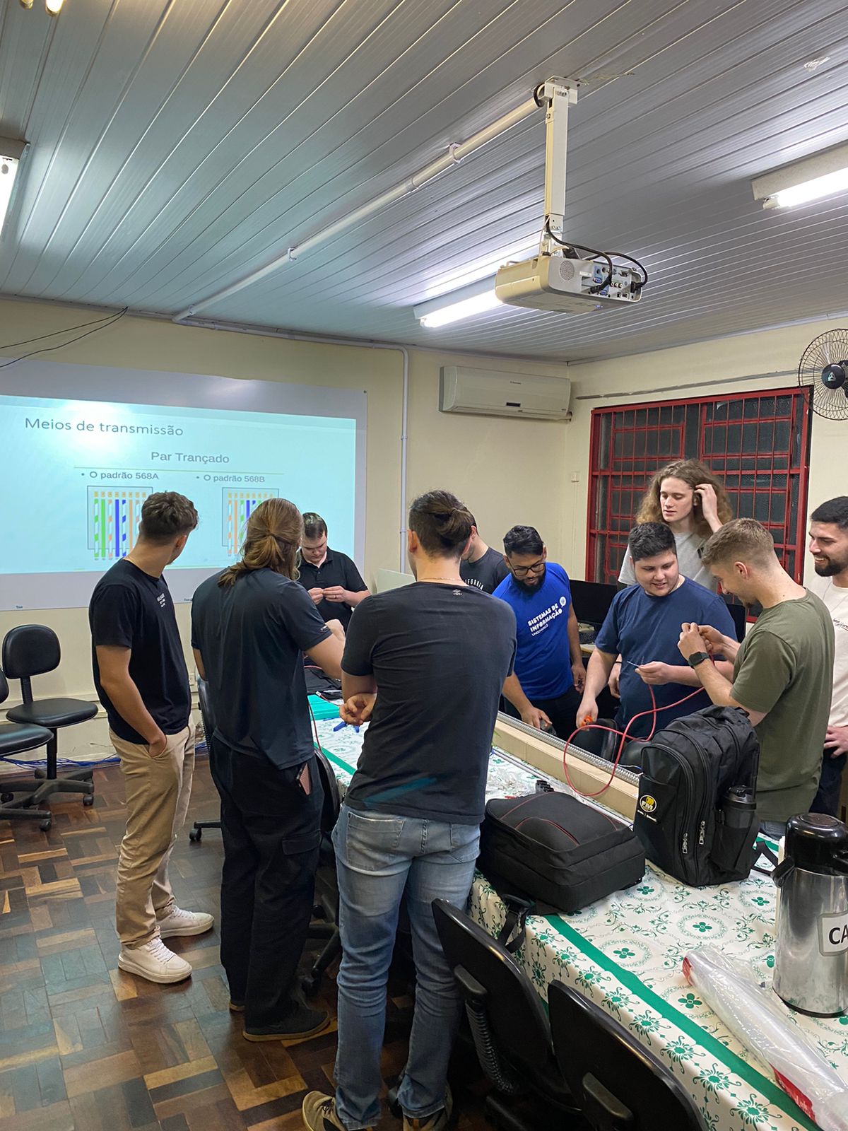Chapecó, 13 de setembro de 2024 - No último mês, chegaram ao fim as atividades de extensão do componente curricular de 'Redes de Computadores' do 5° período dos cursos de Ciência da Computação e Sistemas de Informação. Com orientações do professor Ariel Zuquello, o objetivo do projeto foi melhorar a infraestrutura de dados e voz do laboratório de informática da Escola de Educação Básica Professora Sônia De Oliveira Zani.