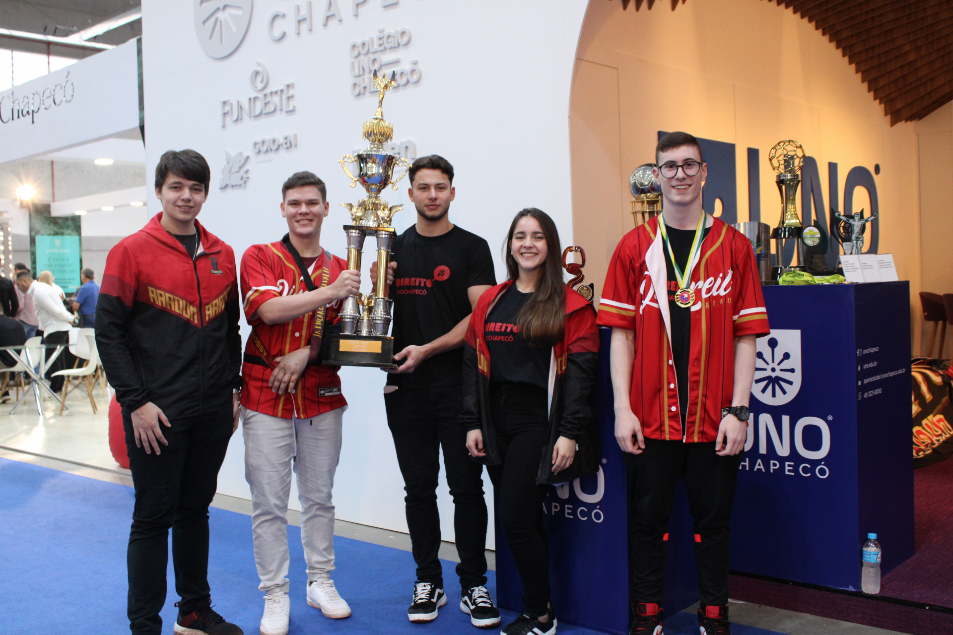 No último domingo (08/10), o estande da Unochapecó na Efapi se tornou um misto de sala de troféus, comitê olímpico e arquibancada. Atletas e equipes esportivas patrocinadas pela Universidade estiveram presentes ao longo do dia, compartilhando suas trajetórias, conquistas e experiências. Os troféus, que simbolizam apenas algumas das conquistas da Uno pelo desporto profissional, deram o tom de celebração junto aos visitantes. Além disso, estiveram presentes os cursos da Escola da Saúde e das mais de 15 atléticas acadêmicas.