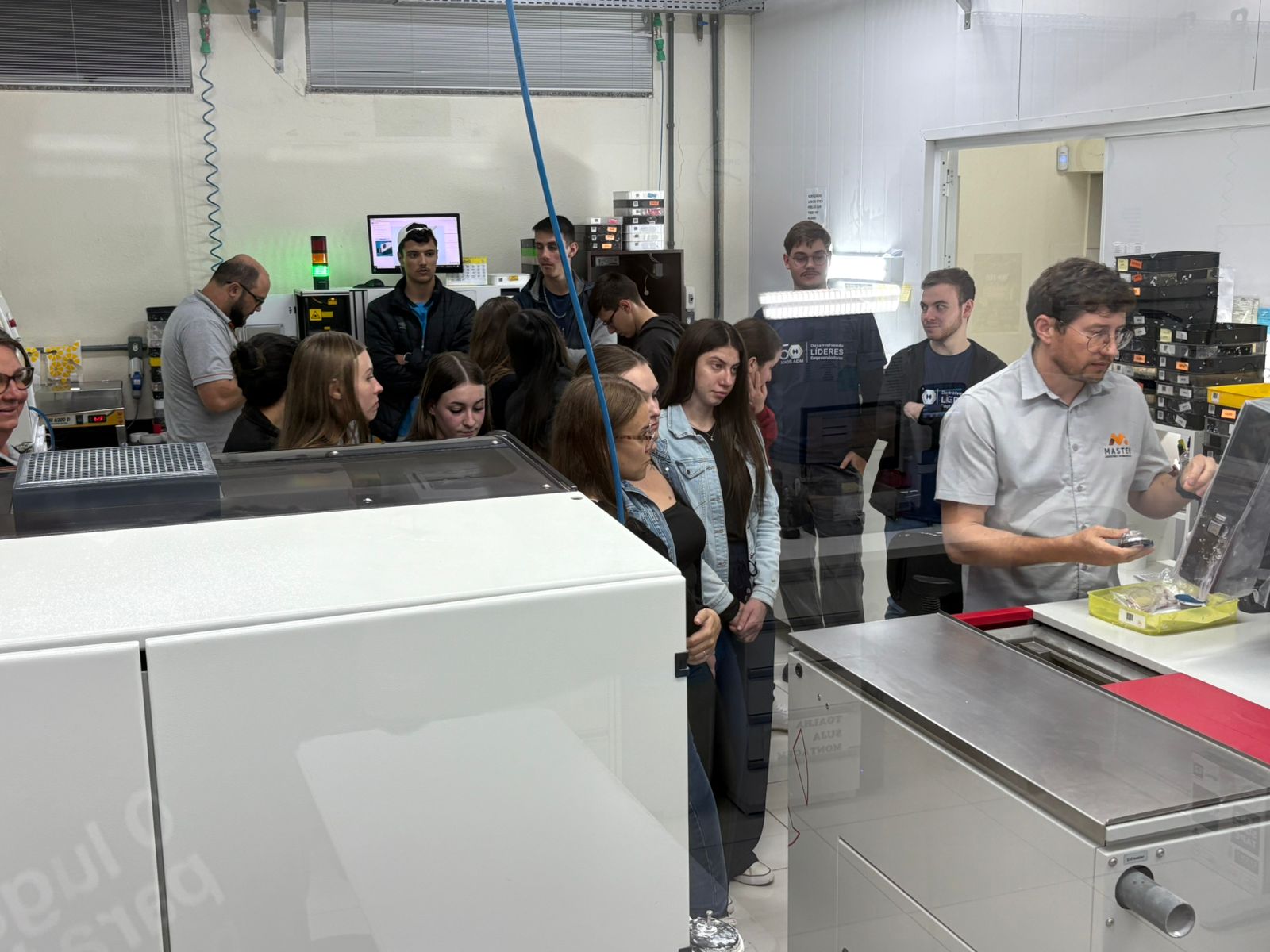 Durante a visita, o empresário Adelar Macêdo guiou os acadêmicos pelas instalações da fábrica, demonstrando as etapas do processo produtivo das lentes e apresentando os equipamentos utilizados na produção. Ao final, compartilhou com os estudantes sua história de vida, os desafios enfrentados na fundação da empresa e os planos de crescimento da Master Ótica.