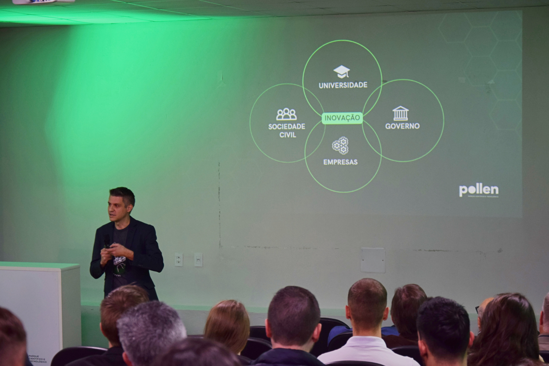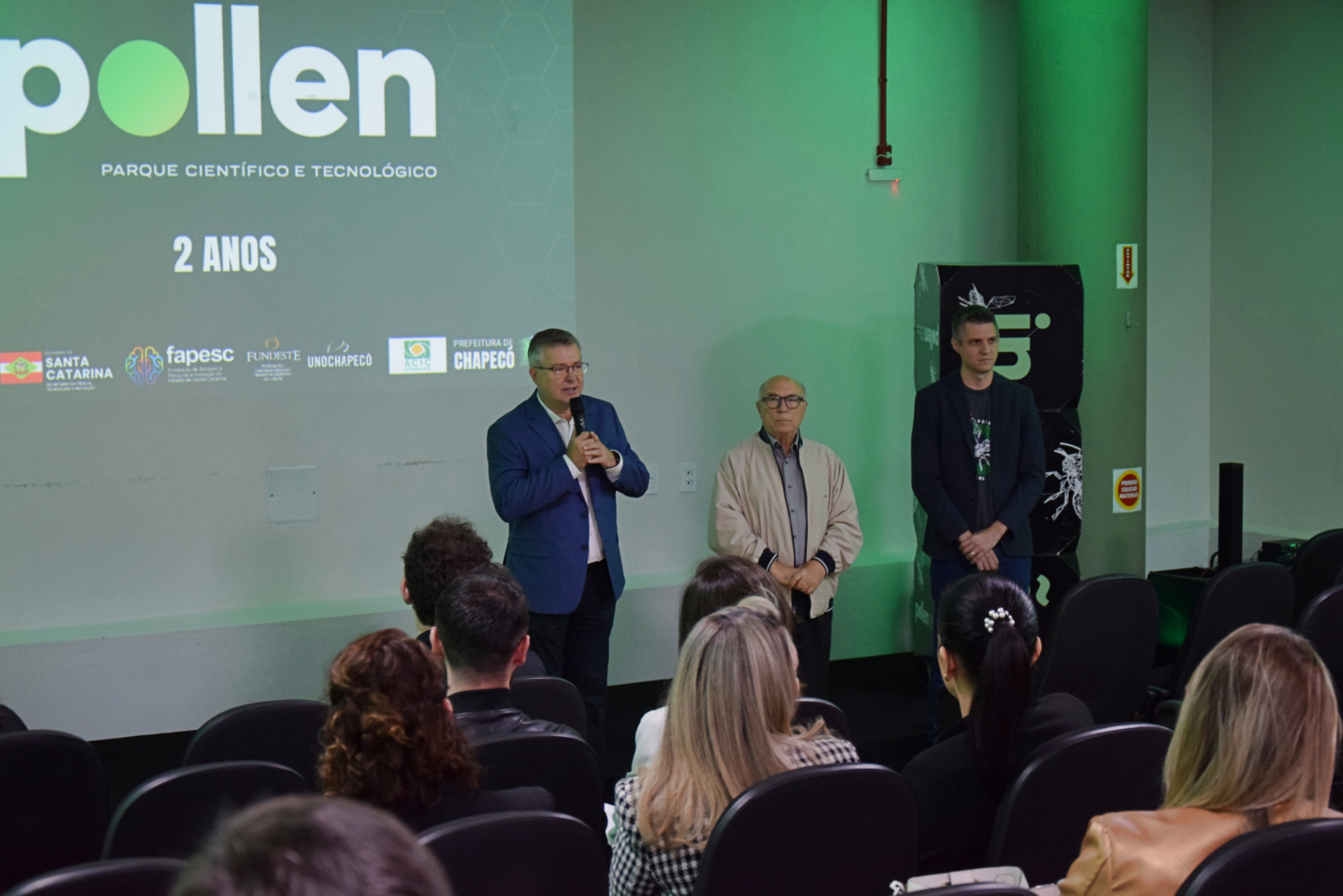 A apresentação dos resultados foi exposta pelo Diretor da Agência de Inovação, Rodrigo Barichello, em sua fala, o diretor abordou o vínculo do Pollen com a comunidade chapecoense, por meio de suas associações, empresas e iniciativas, e fez menção especial às ações relacionadas aos cursos de Graduação e Pós-graduação da Unochapecó. “É desde 2008 que temos esse projeto, são muitas mãos trabalhando com que isso aconteça e para estarmos nesse momento hoje. Esse é um crédito que toda comunidade chapecoense e a universidade tem. Queremos cada vez mais levar esse conhecimento à sociedade", enfatizou.