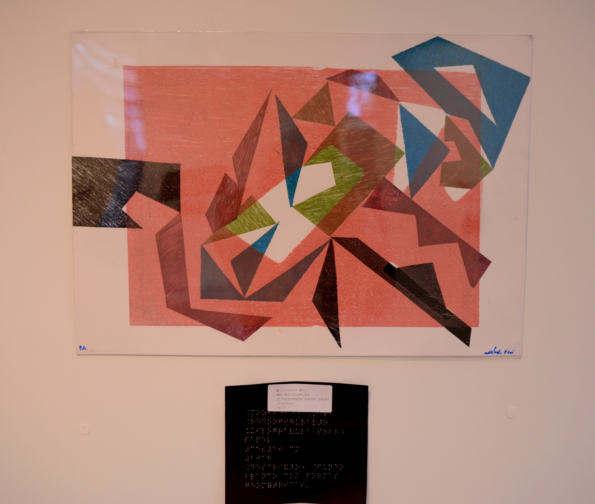 A exposição é formada por 15 obras distribuídas na galeria, sendo 12 xilogravuras sobre papel e três obras táteis, formadas por colagens geométricas de madeira, papelão e couro sobre papel que fazem referência às matrizes das xilogravuras. Essas obras táteis integram a composição e convidam os observadores a tocar e sentir, com a ponta dos dedos, as texturas e formas. As fichas técnicas estão em dupla leitura, português e braille, assim como o texto sobre a exposição. "É uma exposição acessível para todos os públicos. Os materiais podem ser tocados pelo público com deficiência visual e também pelo público vidente. A ideia é que todos possam fazer uma experiência tátil com as obras", ressalta a artista.