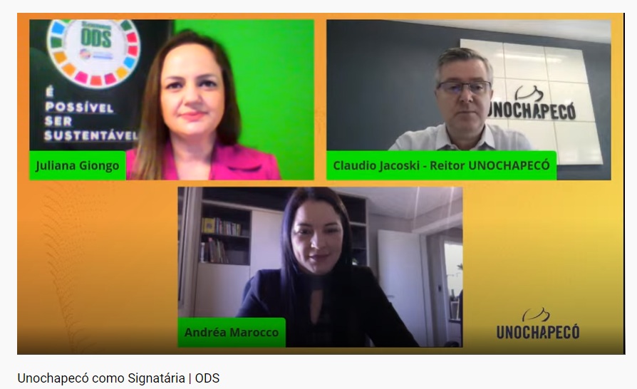 Intitulado de mês “ODS na Prática Unochapecó”, serão cinco lives que serão transmitidas no YouTube da Universidade e no Facebook da Comissão ODS Uno, todas as quarta-feiras, com apresentação de Juliana Giongo e participação de convidados especiais da comunidade acadêmica. A primeira live, realizada na última semana, apresentou o papel das universidades para o desenvolvimento sustentável, e teve a presença do reitor da Universidade, professor Claudio Jacoski, e da pró-reitora de Pesquisa, Extensão, Inovação e Pós-Graduação, professora Andrea Marocco.