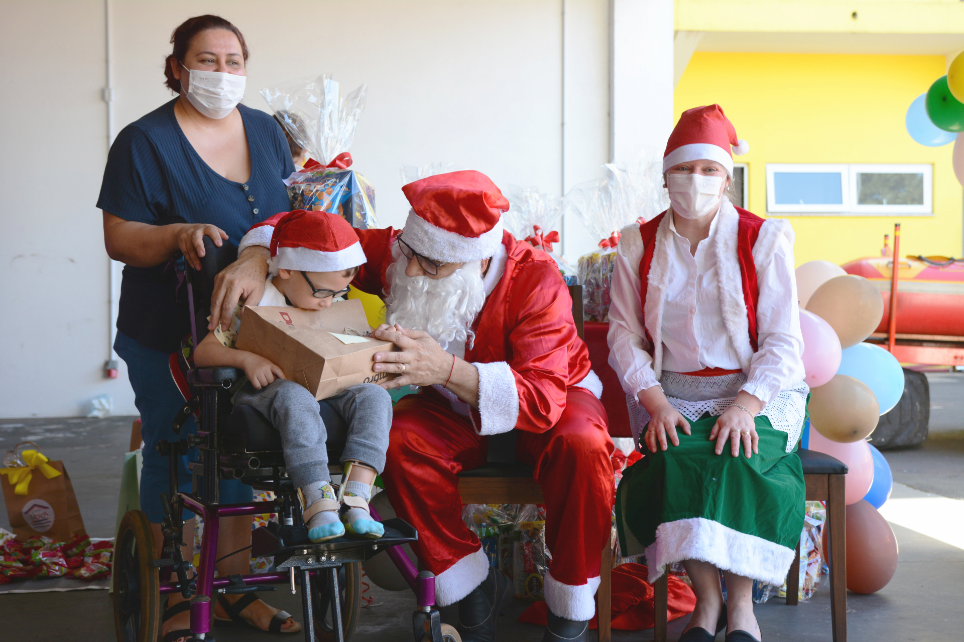 A manhã começou com uma recreação coordenada pela professora de Fisioterapia, Michele Minozzo dos Anjos, homenagens para os bombeiros e apoiadores do projeto e recepção dos convidados mais esperados: o Papai e a Mamãe Noel. Eles chegaram em meio a muitos abraços, distribuindo doces e conversando com todas as crianças. Em seguida, começaram a distribuição de presentes. Pedro não foi o único a receber o que havia pedido em sua cartinha, seus colegas também ganharam bolas, bonecas, jogos, roupas, entre outros.