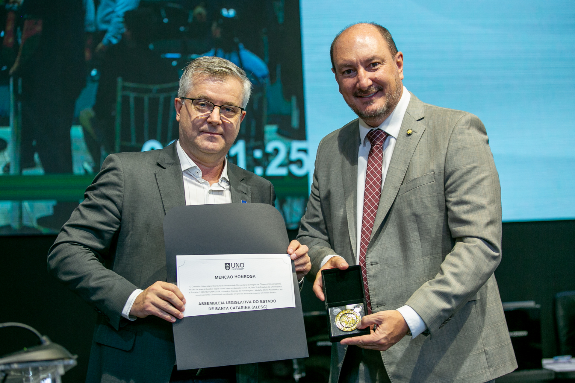 REITOR DA UNOCHAPECÓ DESTACA AVANÇOS NA EDUCAÇÃO E HOMENAGEIA ALESC
