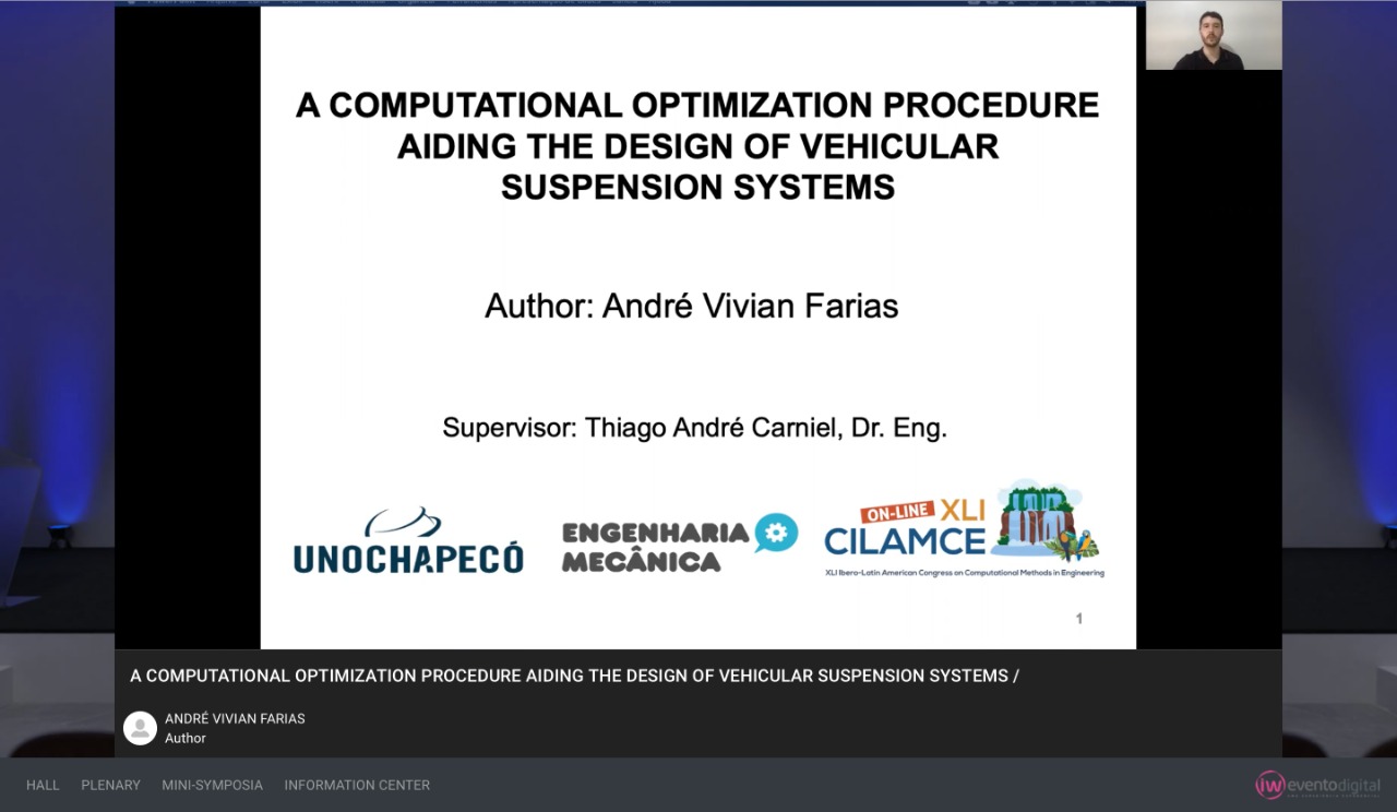 O estudo, intitulado ‘A computational optimization procedure aiding the design of vehicular suspension systems’, foi orientado pelo professor Thiago André Carniel, que também teve contato com conceitos de otimização computacional durante sua formação acadêmica. “Com certeza esta premiação é um importante indicador sobre a qualidade acadêmica e científica do curso de Engenharia Mecânica da Unochapecó. Este prêmio também reflete a preocupação dos docentes do curso em moldar um perfil não somente profissional, mas também científico aos estudantes”, destaca.
