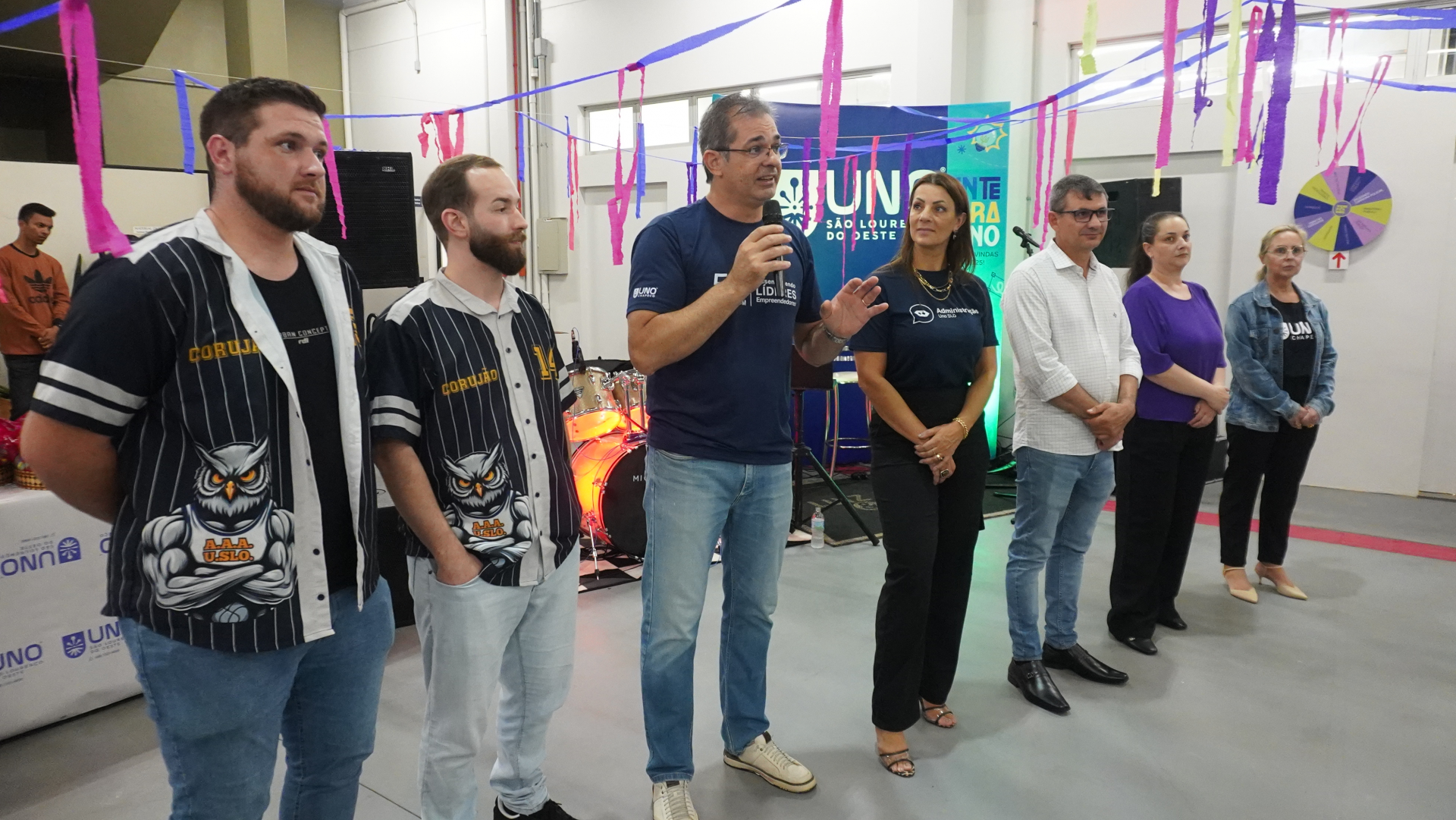 São Lourenço do Oeste, 19 de fevereiro de 2025 - Na noite desta terça-feira (18), a Uno São Lourenço do Oeste realizou o evento Integra Uno, uma iniciativa voltada para a recepção e integração dos novos acadêmicos ao ambiente universitário. A programação envolveu direção, coordenadores dos cursos, professores, atlética, equipe administrativa e veteranos, garantindo uma acolhida calorosa para os mais de 80 ingressantes.