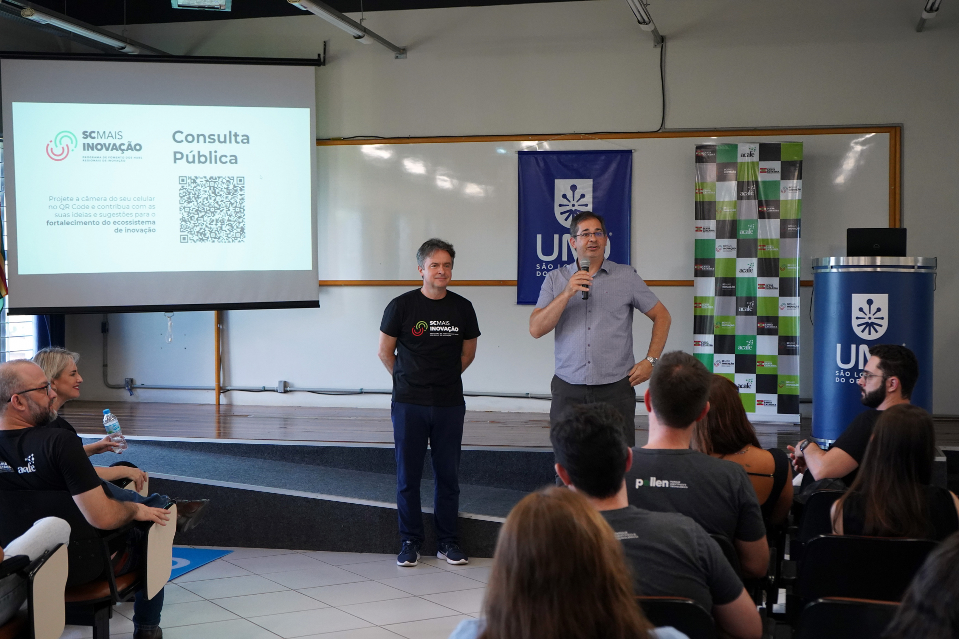 O evento contou com a presença do secretário de Estado da Ciência, Tecnologia e Inovação, Marcelo Fett, do coordenador do programa SC Mais Inovação, Adriano Rodrigues, além de representantes de entidades empresariais, cooperativas de crédito e lideranças políticas locais.