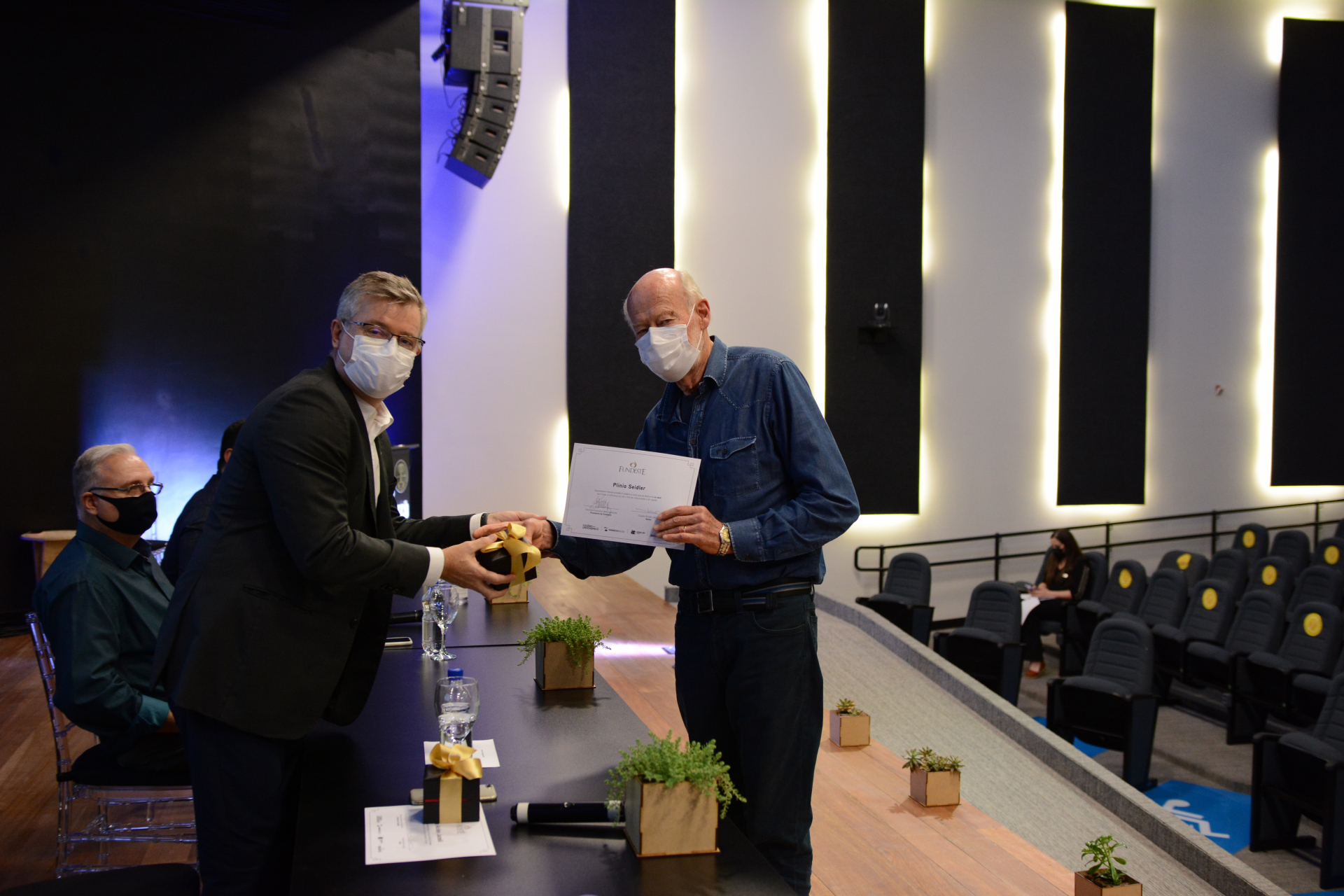 Entre os mais de 190 homenageados nesta edição do evento, estava o professor Plinio Seidler. Em 2020 ele completou 45 anos de Unochapecó. Quando a Universidade ainda era um pequeno campus no bairro Seminário de Chapecó, Plínio estava na direção da Fundeste e já exercia a função de docente. Ele relata que a Unochapecó era uma Escola de Ensino Superior, a qual sonhava em tornar-se Universidade, e foi o que aconteceu. Esse era apenas o início de uma longa história. "Para mim, ensinar, transmitir conhecimento para o discente, é uma grande satisfação. Eu me lembro dos meus professores, são ensinamentos e momentos que a gente nunca esquece. A experiência acadêmica tem um início, mas não tem um fim, o estudante acha que depois do certificado de conclusão terminou tudo, mas na verdade é só o início. Afinal, seja em qualquer área de atuação ou atividade, o conhecimento não pode estagnar, porque a vida continua", conta.