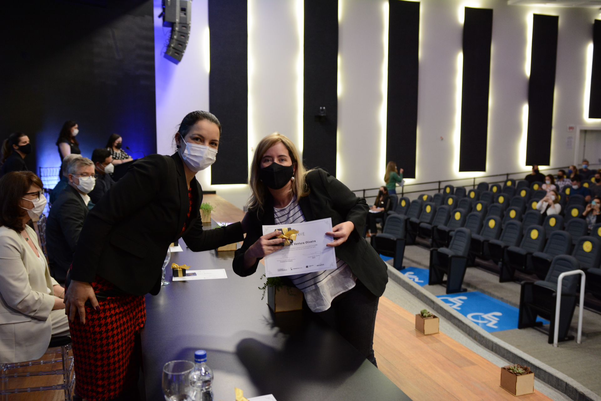 Quem também recebeu a homenagem da Universidade foi a professora do curso de Direito, Kassiana Ventura de Oliveira, que completou 15 anos na Universidade este ano. Considerada sua segunda casa, a Unochapecó, para ela, trouxe bons colegas, a oportunidade de reescrever histórias e de tocar a vida dos estudantes. Suas maiores memórias afetivas dentro da Instituição são com os acadêmicos, especialmente durante as aulas práticas, as quais são feitas com muita garra, dedicação e brilho nos olhos.