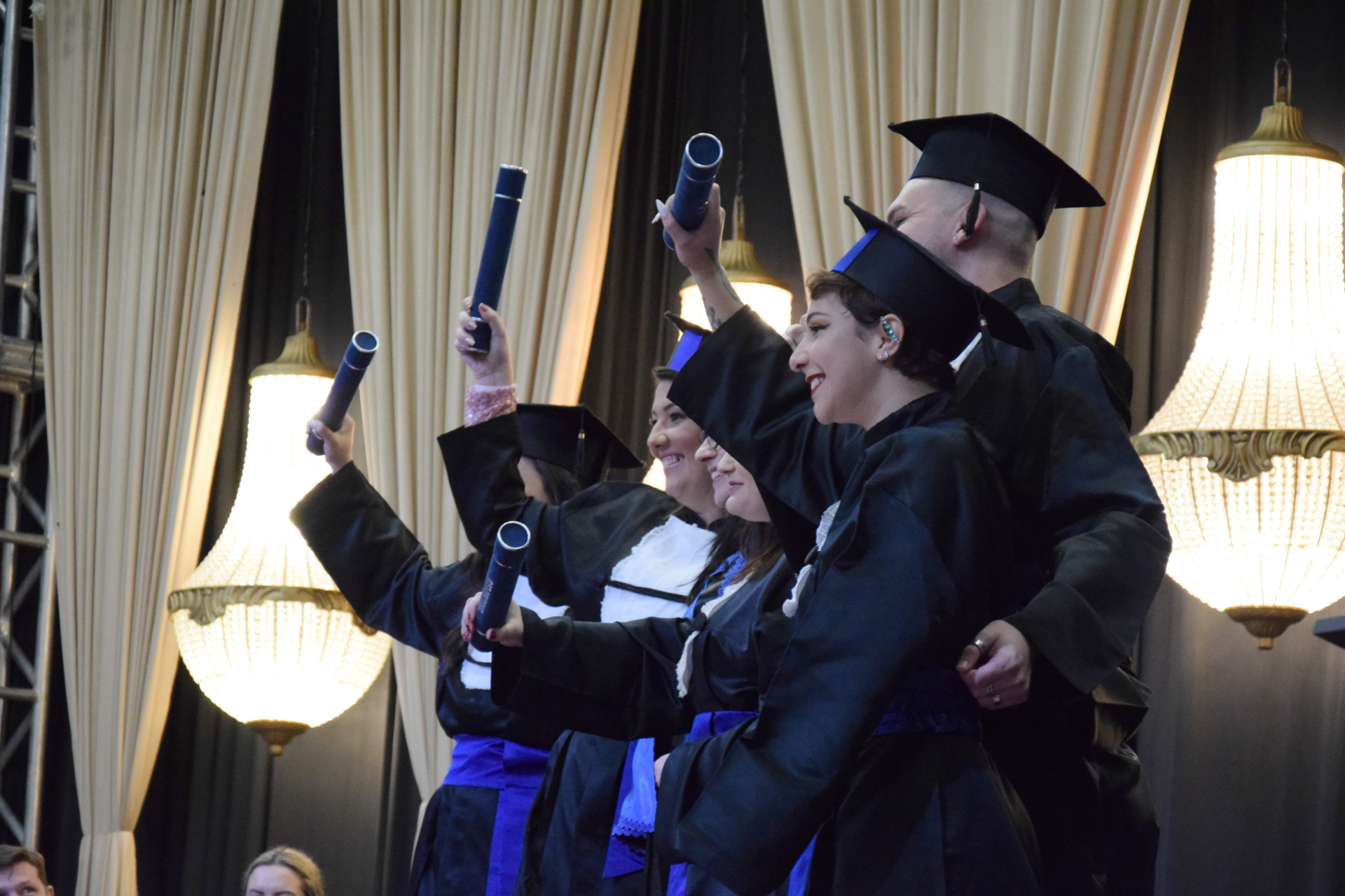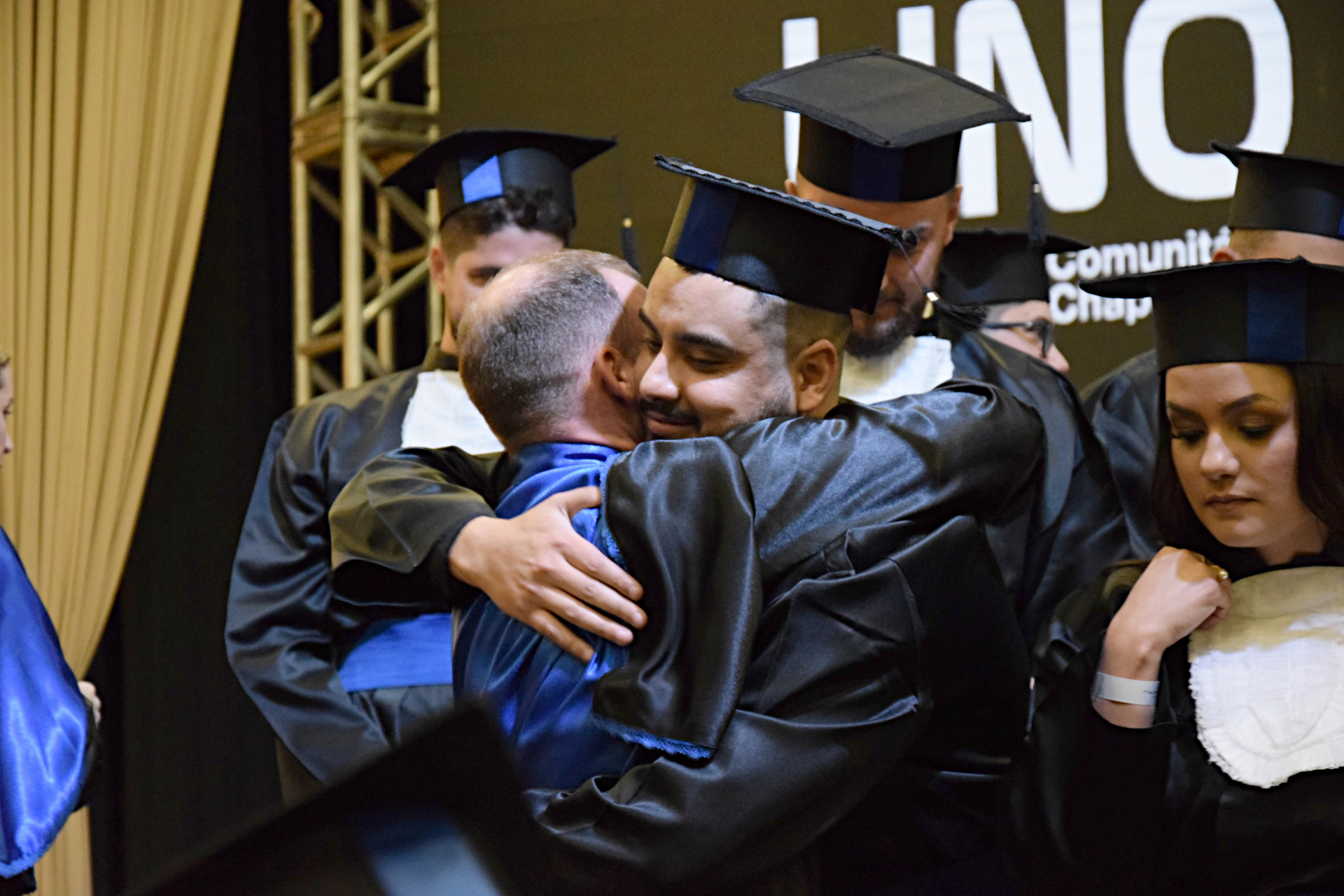 Na última semana, a Unochapecó realizou as solenidades de formatura de novos profissionais. Na quinta-feira (17), subiram ao palco para receber o grau os formandos das escolas de Comunicação e Criatividade, Humanidades, Gestão e Negócios e Politécnica. Já na sexta-feira (18), o Salão Nobre recebeu a formatura do curso de Licenciatura Intercultural Indígena, e posteriormente das escolas de Agrárias e Ambiente e de Saúde. Ao todo, 40 cursos de graduação formaram 255 novos profissionais, no ensino presencial, do campus Chapecó e da unidade de São Lourenço do Oeste, e no ensino à distância.