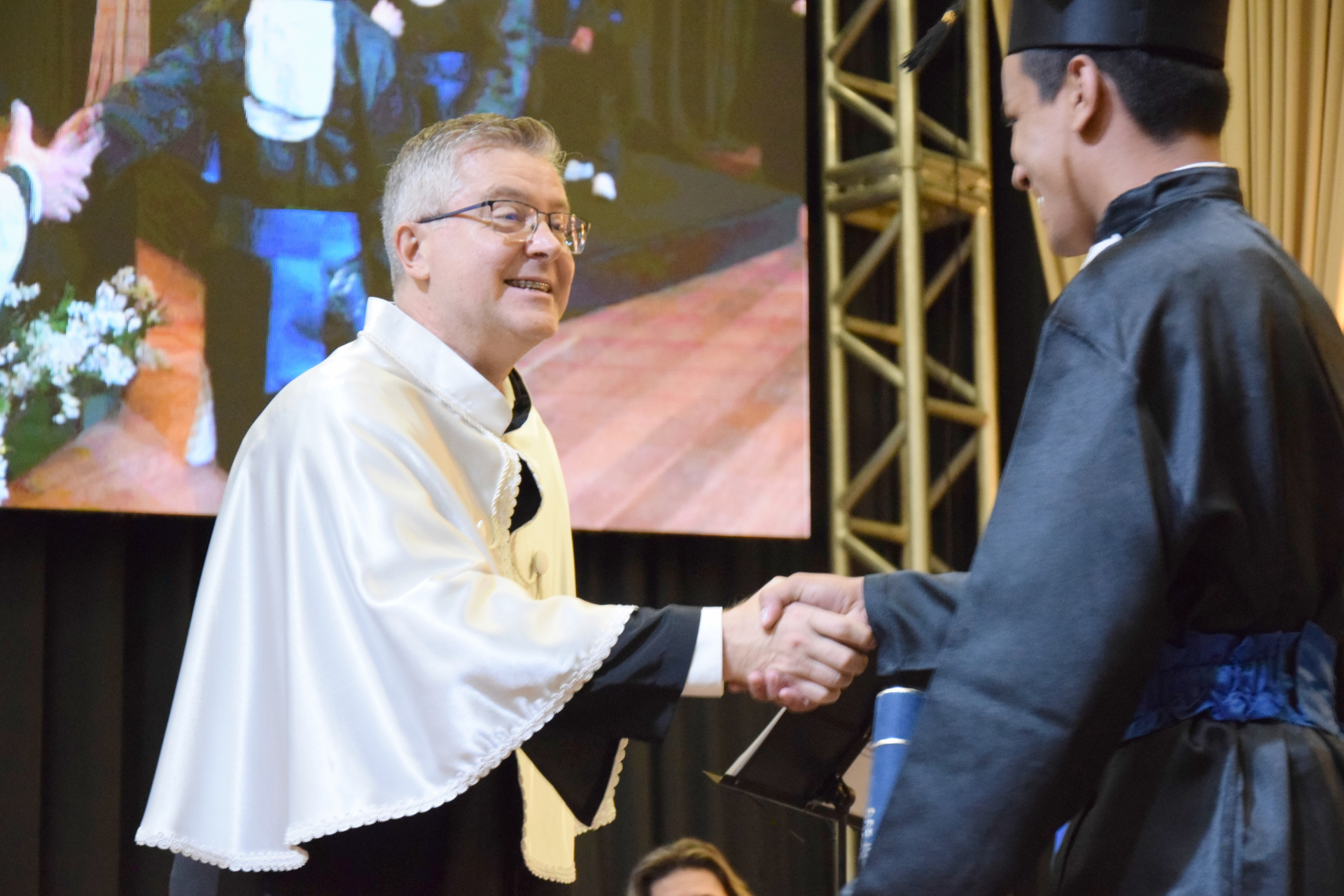 “Quero agradecer profundamente pela presença de todos nesse dia, coordenadores que representam o corpo docente de cada curso, e aos pais. Sabemos que não é fácil essa jornada da graduação e que o apoio dos familiares é essencial. Por isso, é um prazer recebê-los nesse espaço que foi pensado para isso. É um motivo de muita alegria compartilhar desse momento com vocês. Nos resta desejar muito sucesso e deixar aqui nossa torcida para que vocês levem nossa marca com muito orgulho, levem o nome dos professores e dos técnicos da nossa Instituição, que também se orgulham muito de vocês. Tenham uma ótima caminhada e contem sempre com a gente!", concluiu o Reitor.