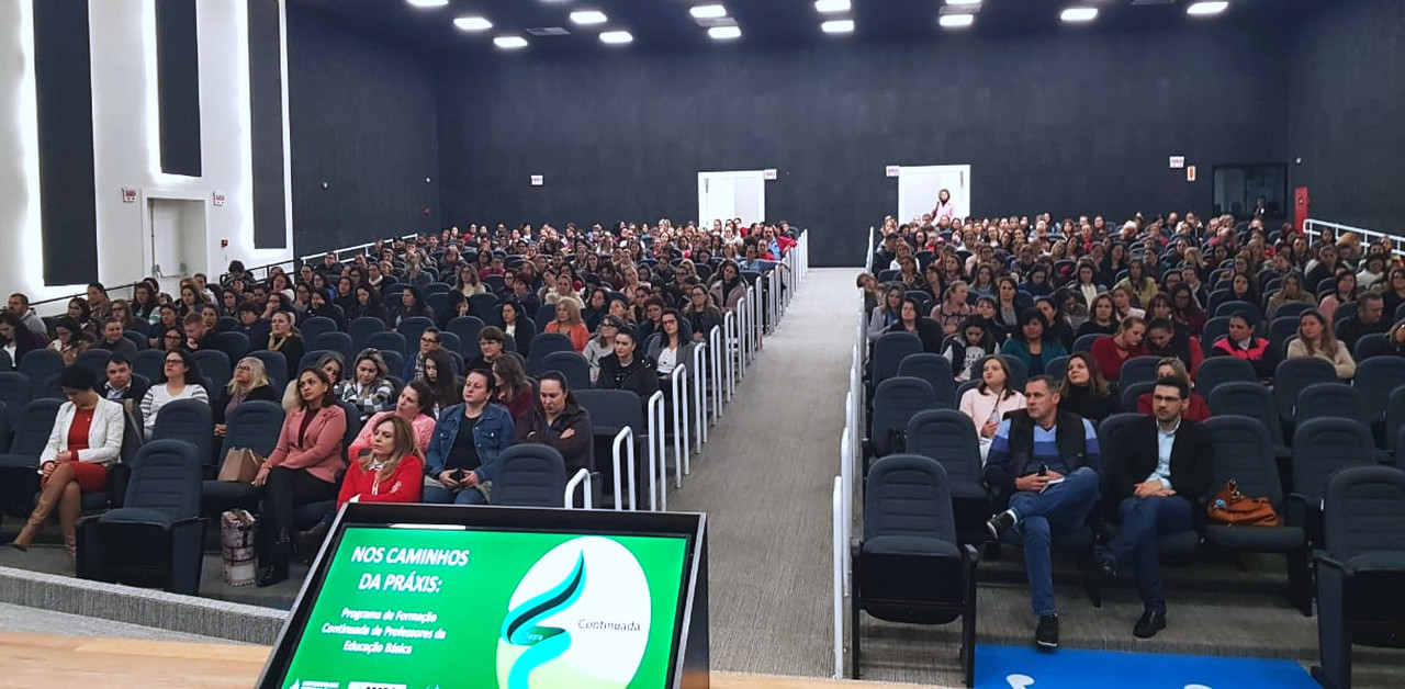 Educação se faz na coletividade. E ninguém melhor do que professores para pensar em novas maneiras e inovações do processo pedagógico. Por isso, entre os dias 15 e 16 de julho, profissionais das redes municipais de educação da região estiveram reunidos no Salão Nobre da Unochapecó para participar de mais uma etapa do programa de Formação Continuada de Professores da Educação Básica. O encontro 'Nos Caminhos da Práxis', esse ano foi organizado pela Universidade Federal da Fronteira Sul (UFFS), em parceria com a Unochapecó e a Associação dos Municípios do Oeste de Santa Catarina (Amosc).