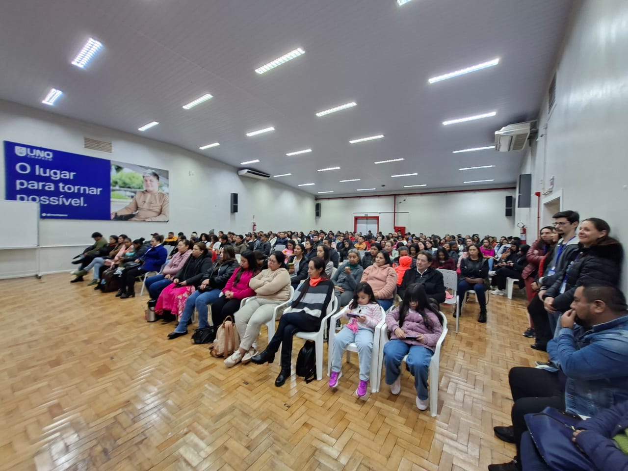 Chapecó, 10 de julho de 2025 - No dia 28 de junho, a Unochapecó foi palco do evento ‘Ação Saberes Indígenas na Escola: caminhos para a criação de materiais didáticos bilíngues’, promovido pelos cursos de Licenciatura Intercultural em Letras e Educação Especial. A atividade teve apoio do Ministério da Educação, por meio da Secretaria de Educação Continuada, Alfabetização de Jovens e Adultos, Diversidade e Inclusão (SECADI), e integrou a agenda de extensão da Universidade.